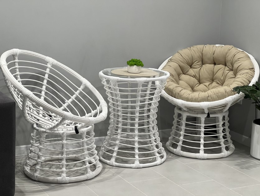 Комплект PAPASAN-SMALL від Кайрос — компактне та стильне плетене крісло з техноротангу на міцному металевому каркасі. Ідеально підходить для невеликих терас, балконів, альтанок або затишного куточка в кімнаті. Зручна чашоподібна форма, м’які подушки та можливість регулювати нахил забезпечують максимальний комфорт.
