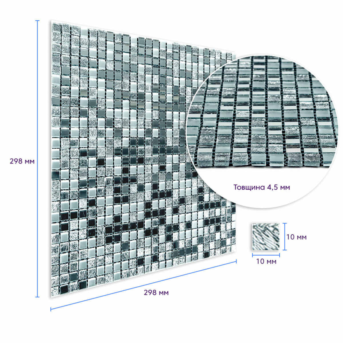 Характеристики - Мозаїка дзеркальна 298х298х4,5мм Срібло SW-00002371
