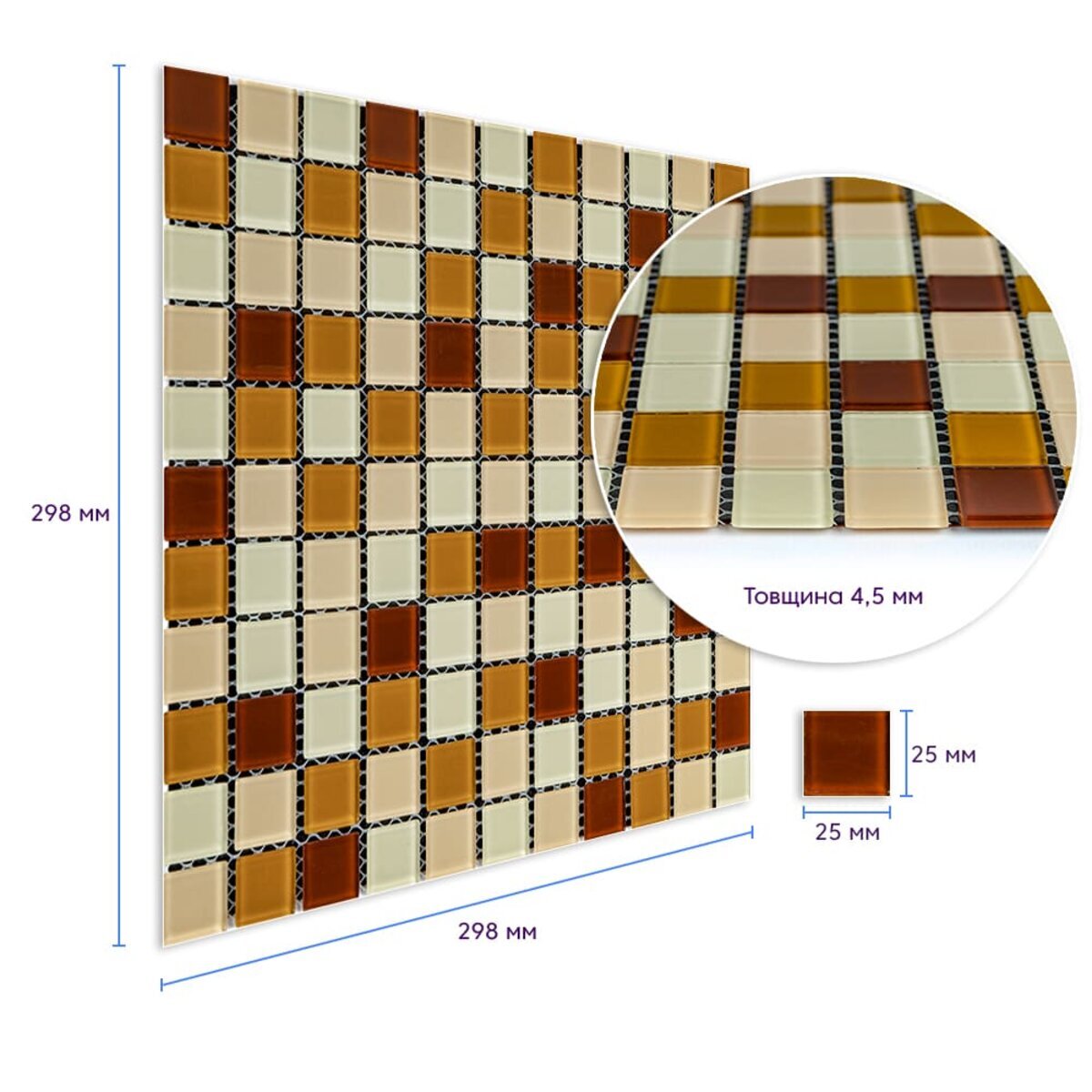 Опис - Мозаїка з декоративного скла 298х298х4,5мм Коричнева SW-00002363