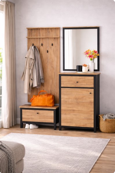 Передпокій №2 з модульної системи Чос від Гербор Холдинг — функціональне та збалансоване рішення для сучасної вхідної зони. Комплект поєднує місткі модулі для зберігання взуття, верхнього одягу та необхідних аксесуарів, забезпечуючи порядок і комфорт у щоденному користуванні.