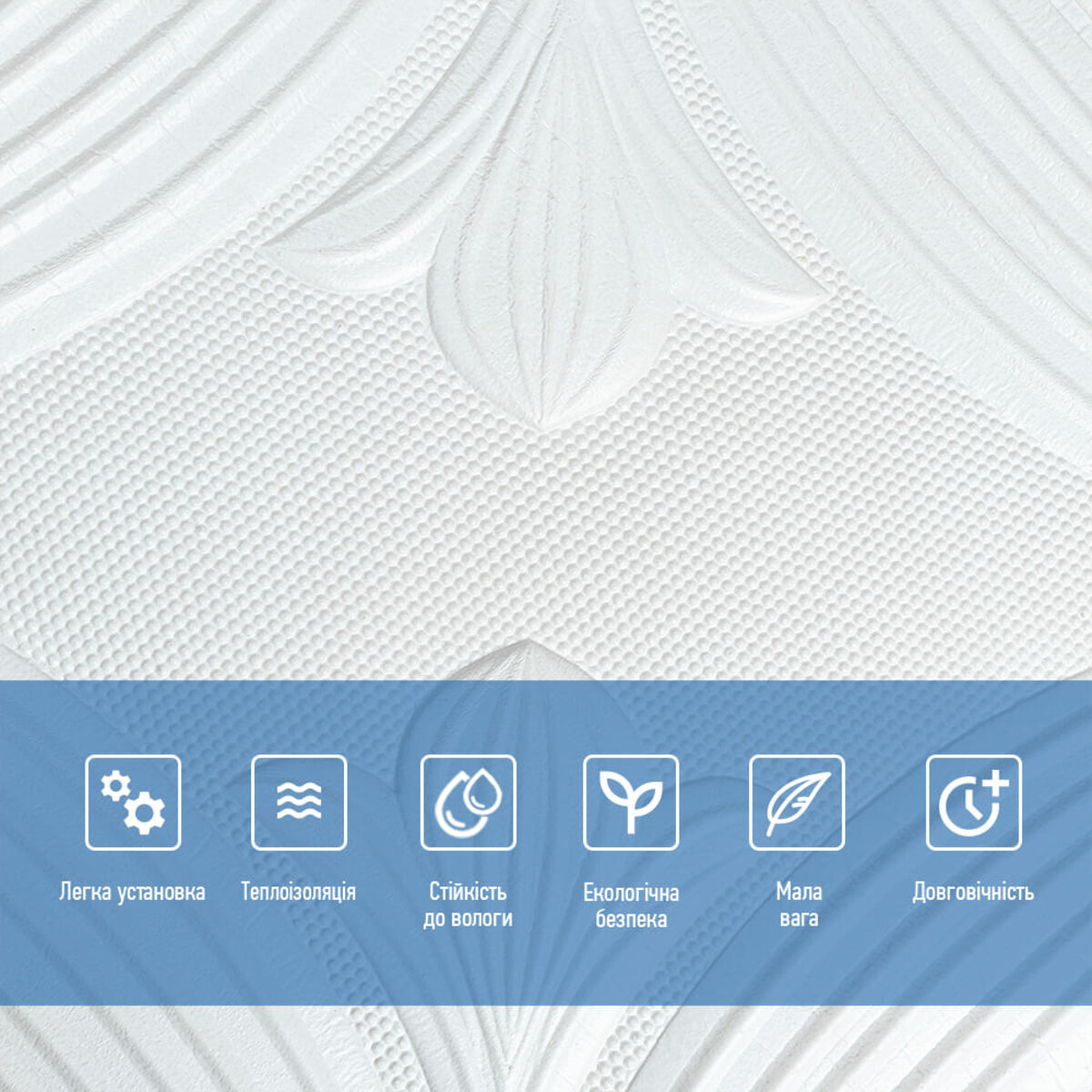 - Легкість монтажу: наявність клейового шару дозволяє встановити панелі без необхідності застосування додаткових матеріалів.