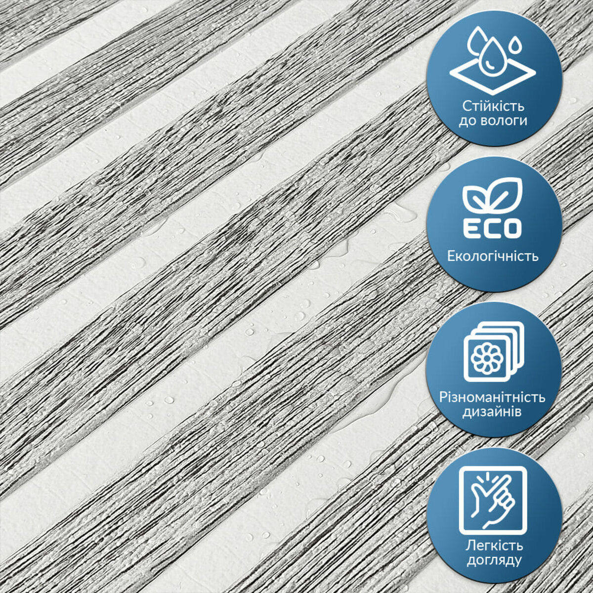 - Легкість монтажу: наявність клейового шару дозволяє встановити панелі без необхідності застосування додаткових матеріалів.