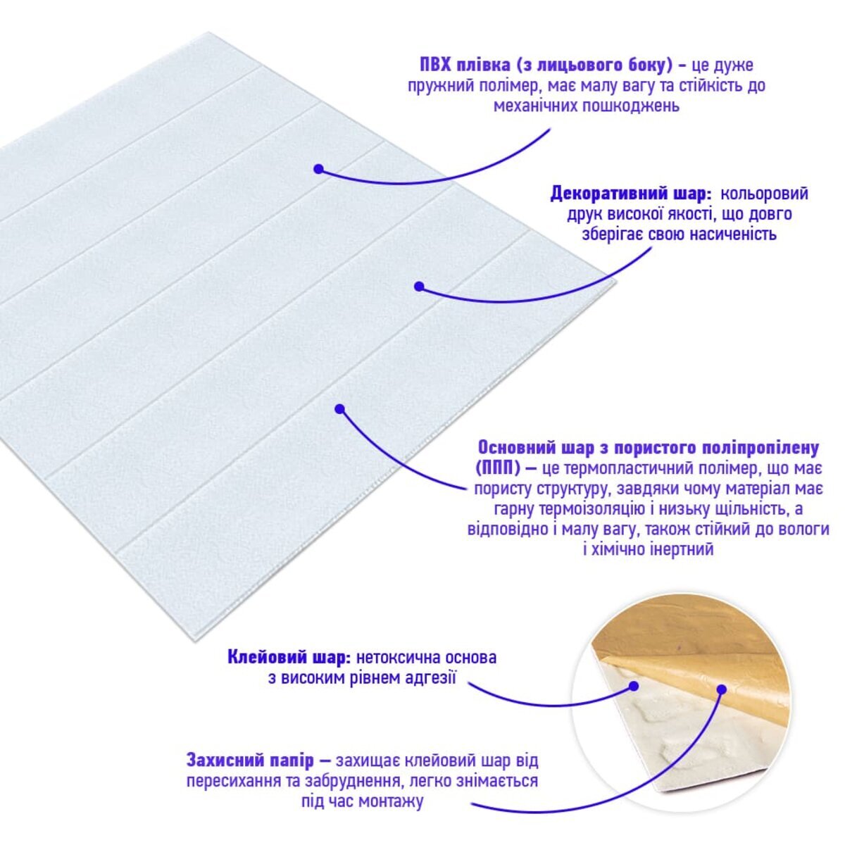 - Легкість монтажу: наявність клейового шару дозволяє встановити панелі без необхідності застосування додаткових матеріалів.