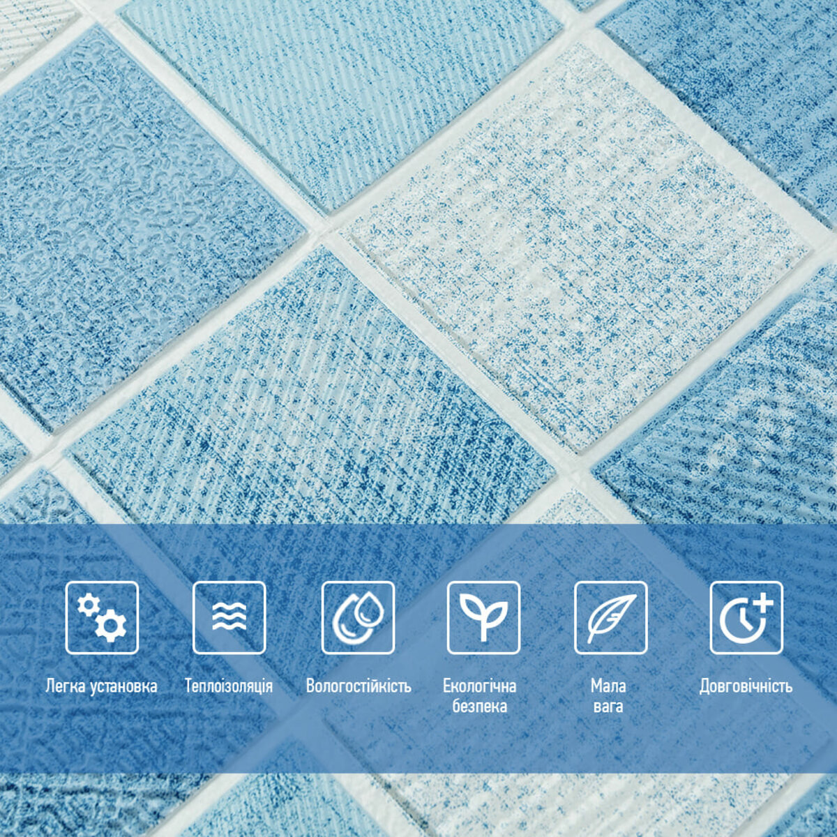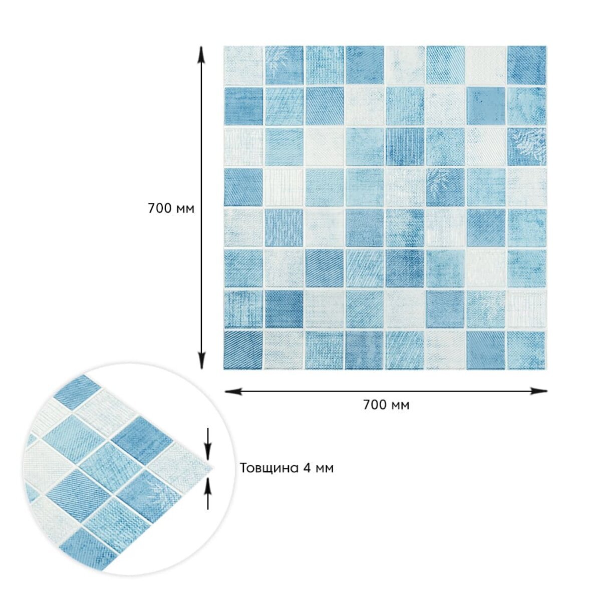 Опис - Панель стінова 3D 700х700х4мм Мозаїка блакитна SW-00002009