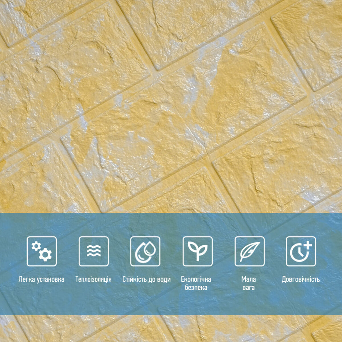 - Легкість монтажу: наявність клейового шару дозволяє встановити панелі без необхідності застосування додаткових матеріалів.