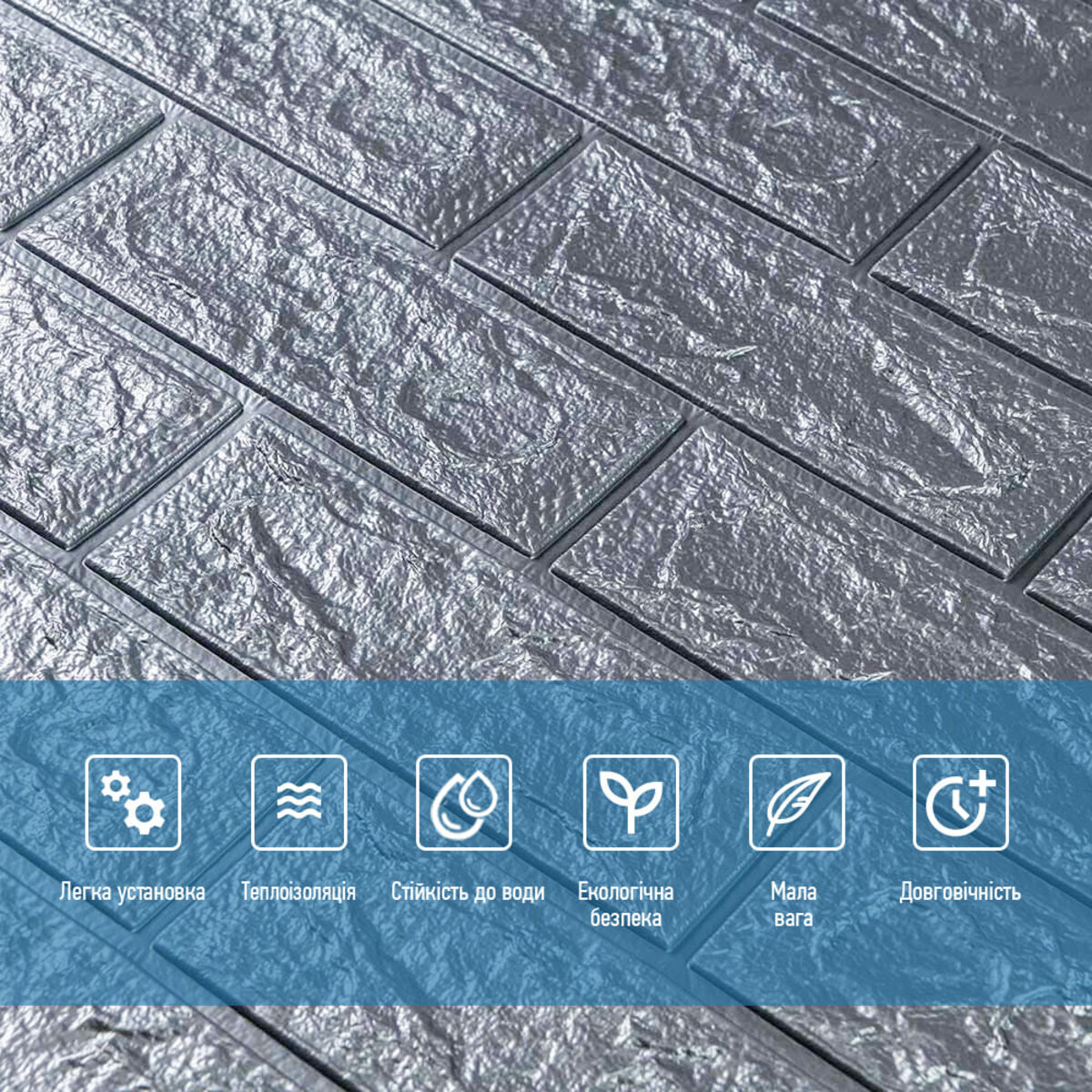 - Легкість монтажу: наявність клейового шару дозволяє встановити панелі без необхідності застосування додаткових матеріалів.