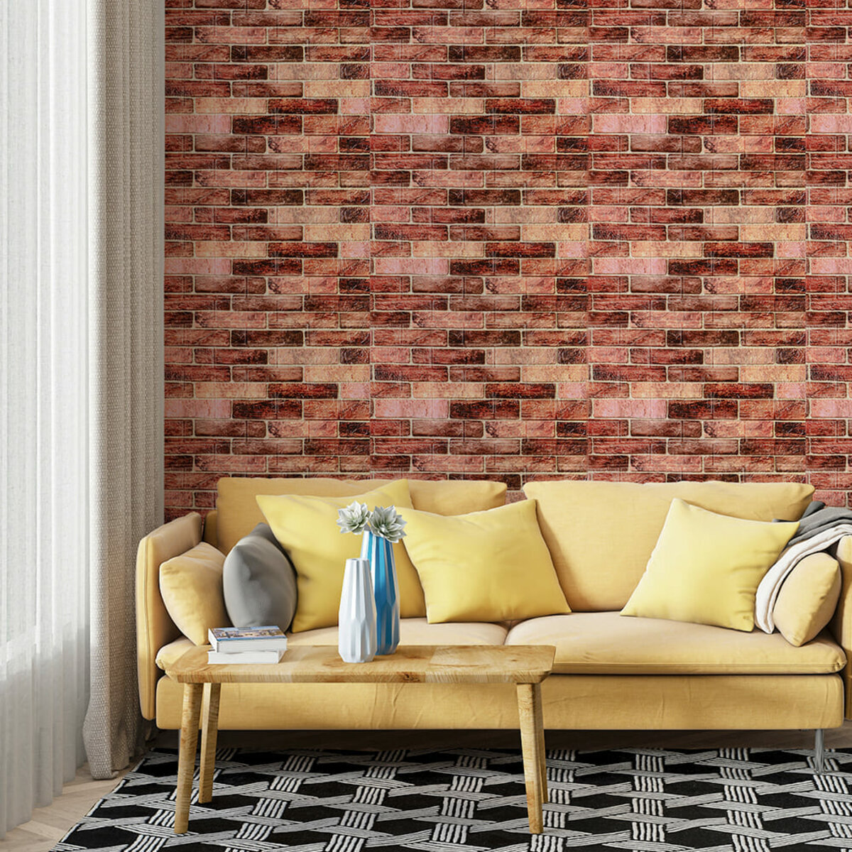 3D панелі самоклеючі – декоративне покриття для стін, виконане з легкого та міцного матеріалу – пористого поліпропілену (ППП). Основна особливість – рельєфний малюнок у вигляді цегли у широкому різноманітті кольорів та наявність клейового шару, що дозволяє встановити панелі без необхідності застосування додаткових матеріалів.