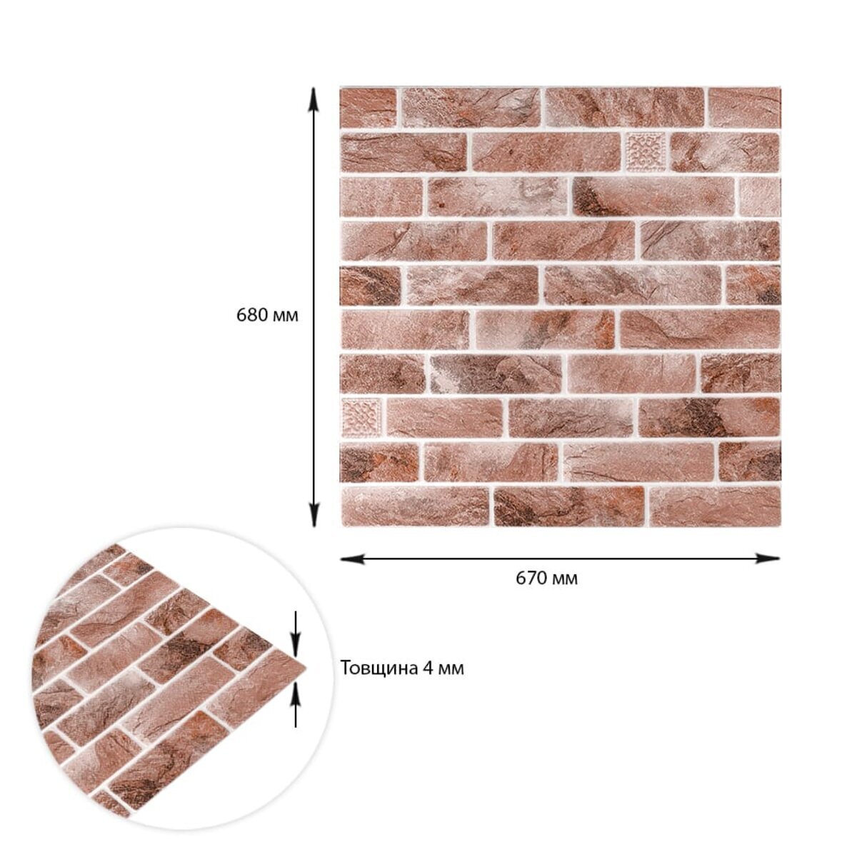 Опис - Панель стінова 670х680х4мм Клінкер піщано-коричневий (D) SW-00002004