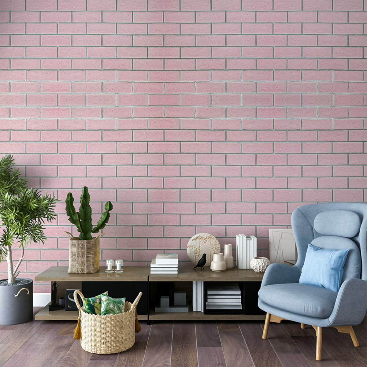 Опис - Панель стінова 700х700х5мм Рожева цегла зі сріблом SW-00001501