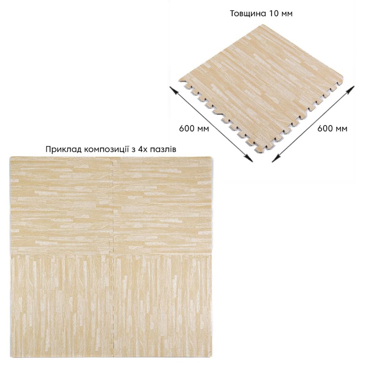 Опис - Підлога пазл - модульне підлогове покриття 600x600x10мм Пісочне дерево (МР14) SW-00000648