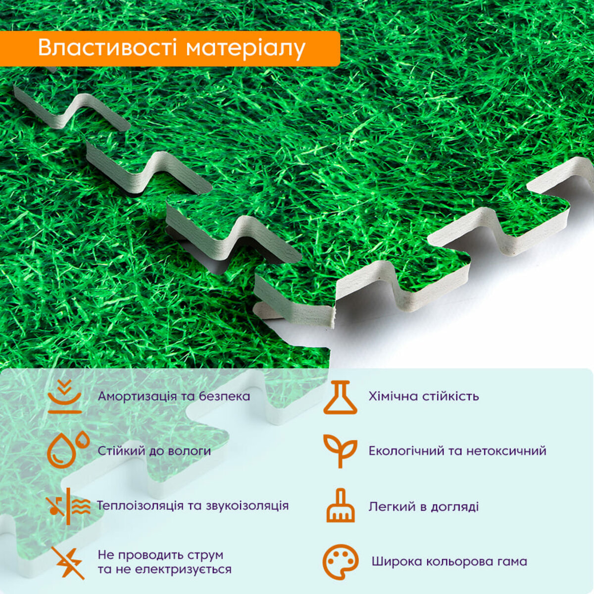 Характеристики - Підлога пазл - модульне підлогове покриття 600x600x10мм Зелена трава (МР4) SW-00000153
