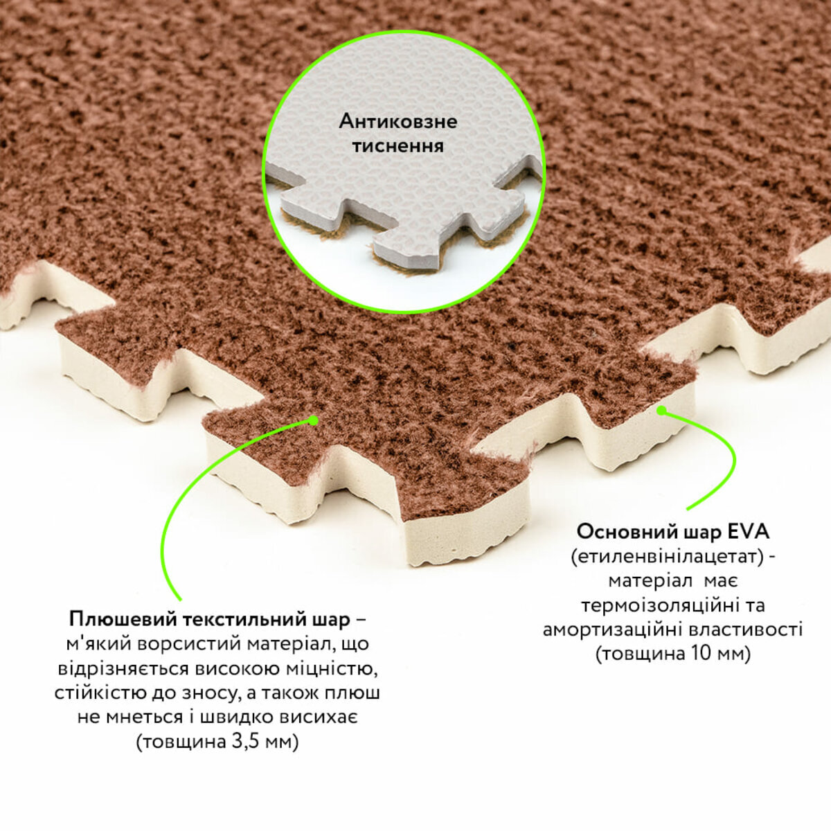 Опис - Підлога-пазл плюшевий 30х30х1см Коричневий (D) SW-00002082