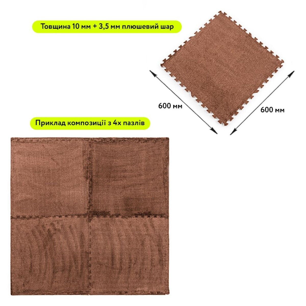 Товщина пазла: основний шар – 10 мм + ворс – 3,5 мм