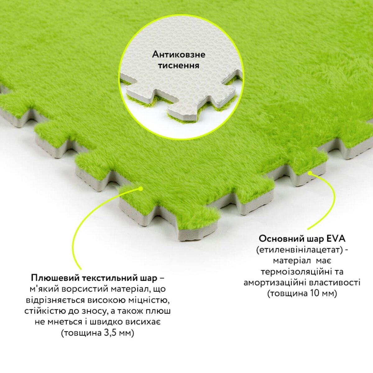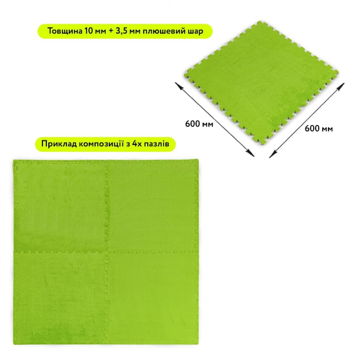 Опис - Підлога-пазл плюшевий 60х60х1см Салатовий (D) SW-00002095