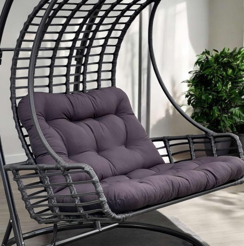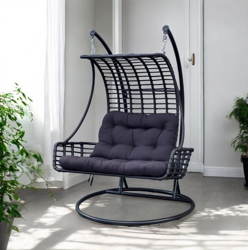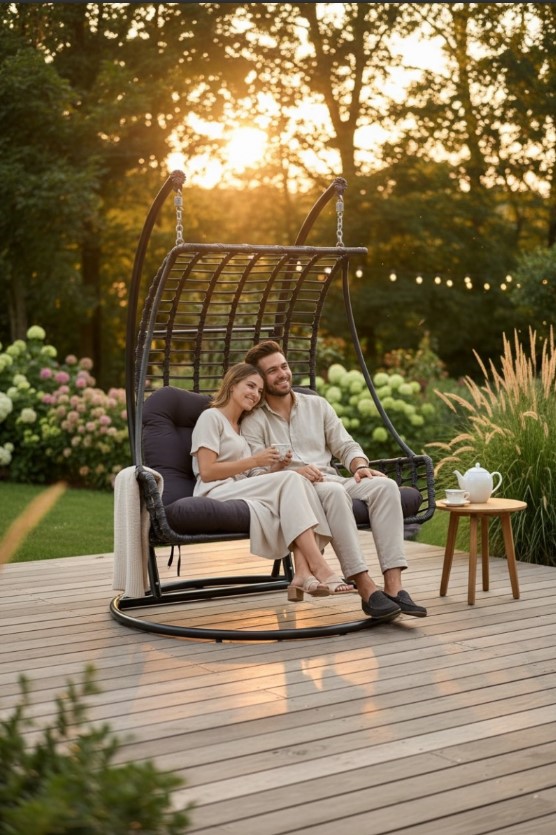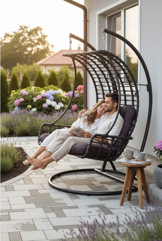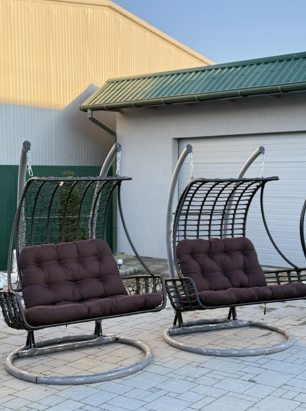Підвісне двомісне крісло-кокон GALANT-LINE — стильне підвісне крісло від українського виробника Кайрос. Виготовлене з техноротангу з додатковим декоративним плетінням, на надійному металевому каркасі. Глибока чаша-кокон, великі м’які подушки та зручна система підвісу забезпечують комфортний відпочинок вдвох. Стійке до сонця та вологи — чудовий вибір для лаунж-зони.
