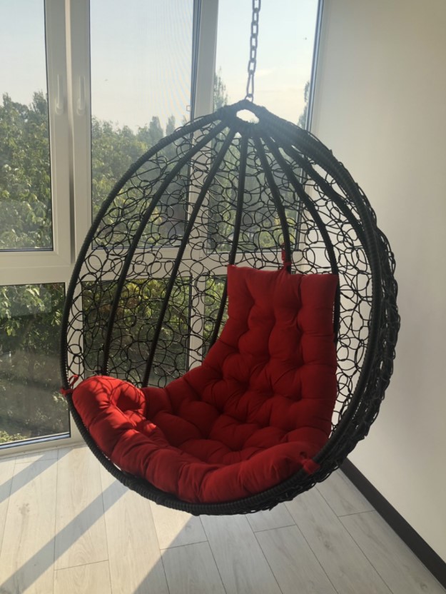 Глибока форма кокона і м’яка знімна подушка дозволяють повністю розслабитися: зручно зігнутися з книгою, послухати музику чи просто погойдатися і зняти напругу після робочого дня. Крісло витримує навантаження до 120 кг і має міцне кріплення, яке забезпечує безпеку.