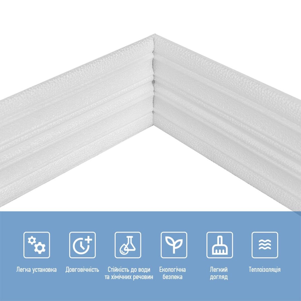 Плінтус ППППлінтус з пористого поліпропілену - декоративний елемент, який встановлюється вздовж нижньої частини стіни для прикриття стику між стіною та підлогою. Завдяки клейовій основі він легко монтується, без застосування додаткових матеріалів і є ідеальним доповненням у різних інтер’єрних рішеннях.