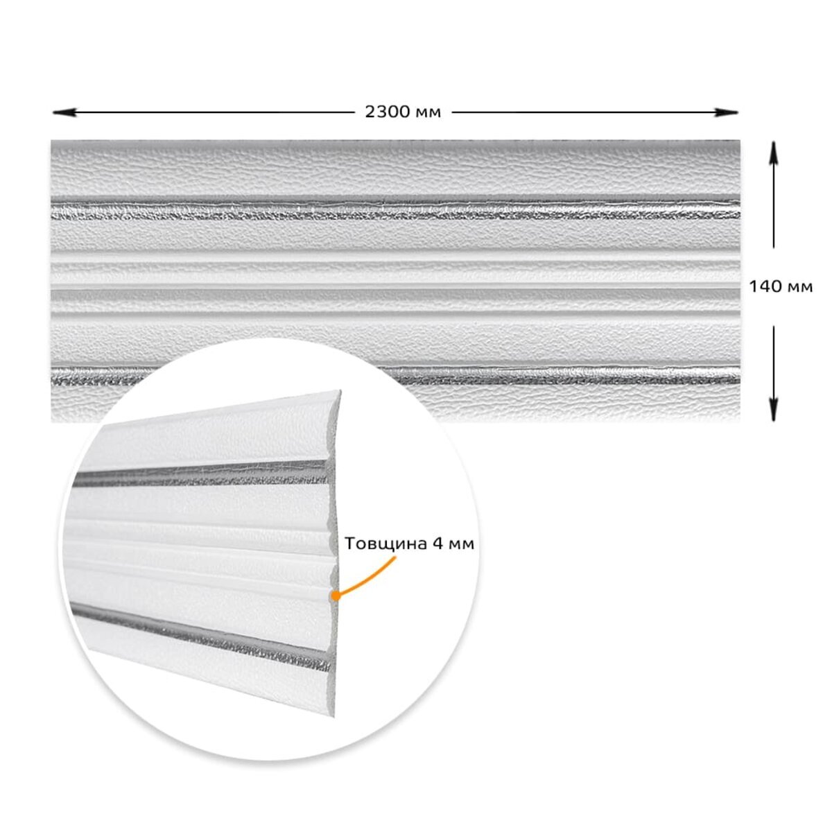 Характеристики - Плінтус РР самоклеючий 2300х140х4мм Білий з сірою смужкою (D) SW-00001809