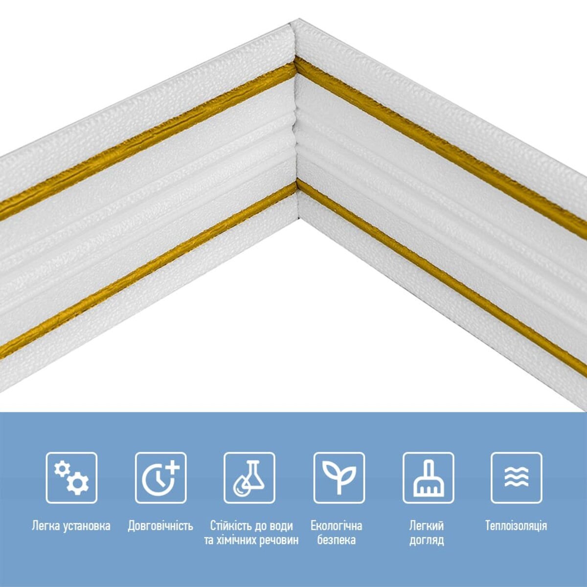 Опис - Плінтус РР самоклеючий 2300х140х4мм Білий з золотою смужкою (D) SW-00001812