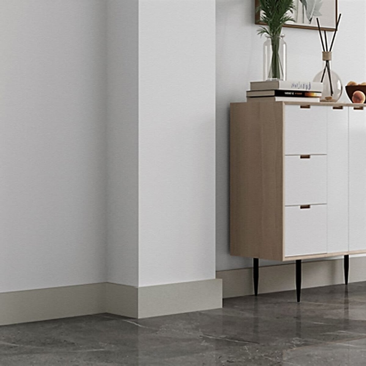 - Довговічність: міцність та зносостійкість вінілу дозволяє плінтусу залишатися в первинному стані протягом тривалого періоду часу;