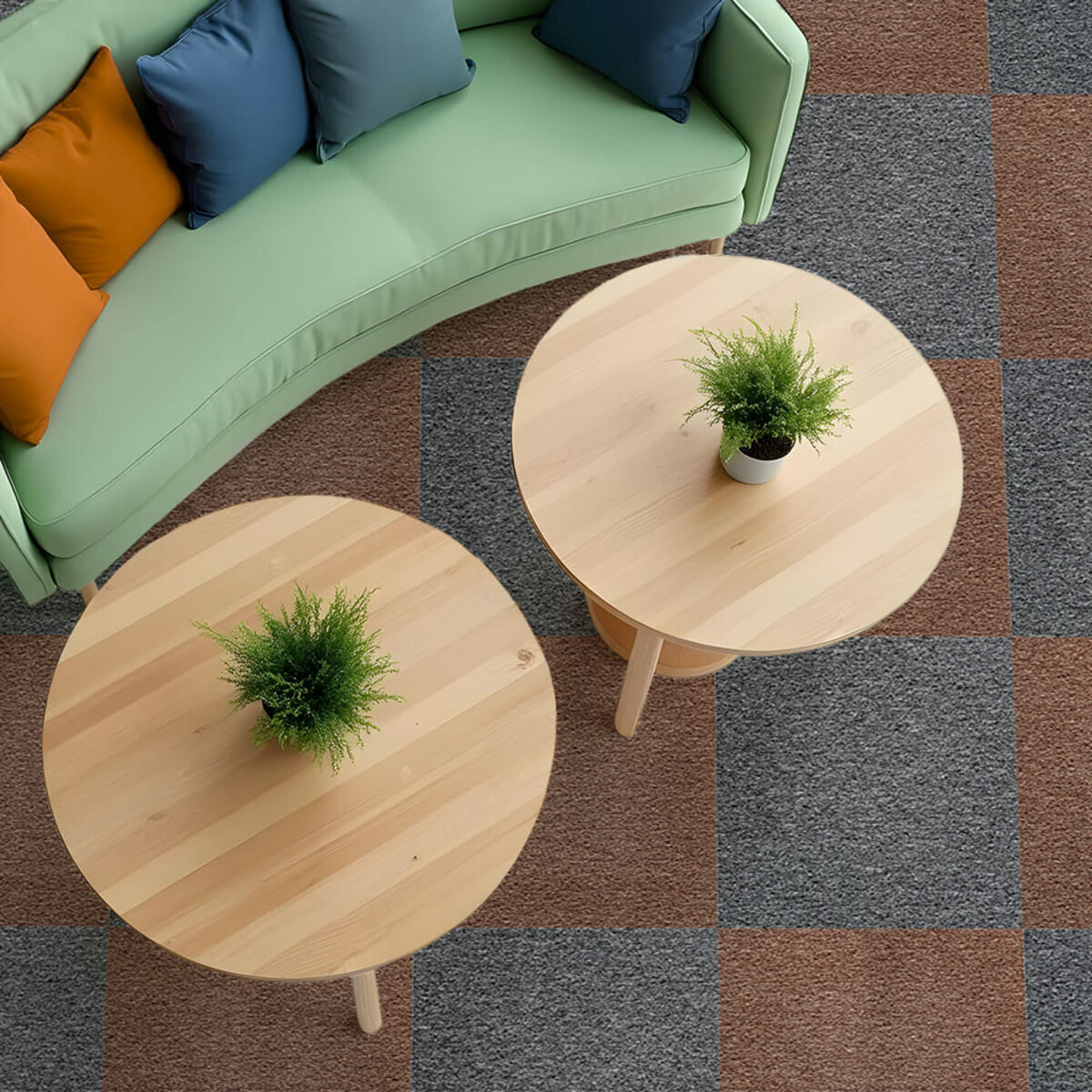 Ковролін у плитках — це сучасне модульне покриття у вигляді квадратів 50×50 см, товщиною 3–4 мм, які монтуються за рахунок власної ваги або фіксуються за допомогою клею. Вирізняється високою щільністю ворсу, завдяки чому матеріал зносостійкий, вологостійкий і підходить для покриття як малих, так і великих площ, зокрема приміщень із високою прохідністю — офісів, коридорів, залів чи житлових кімнат.