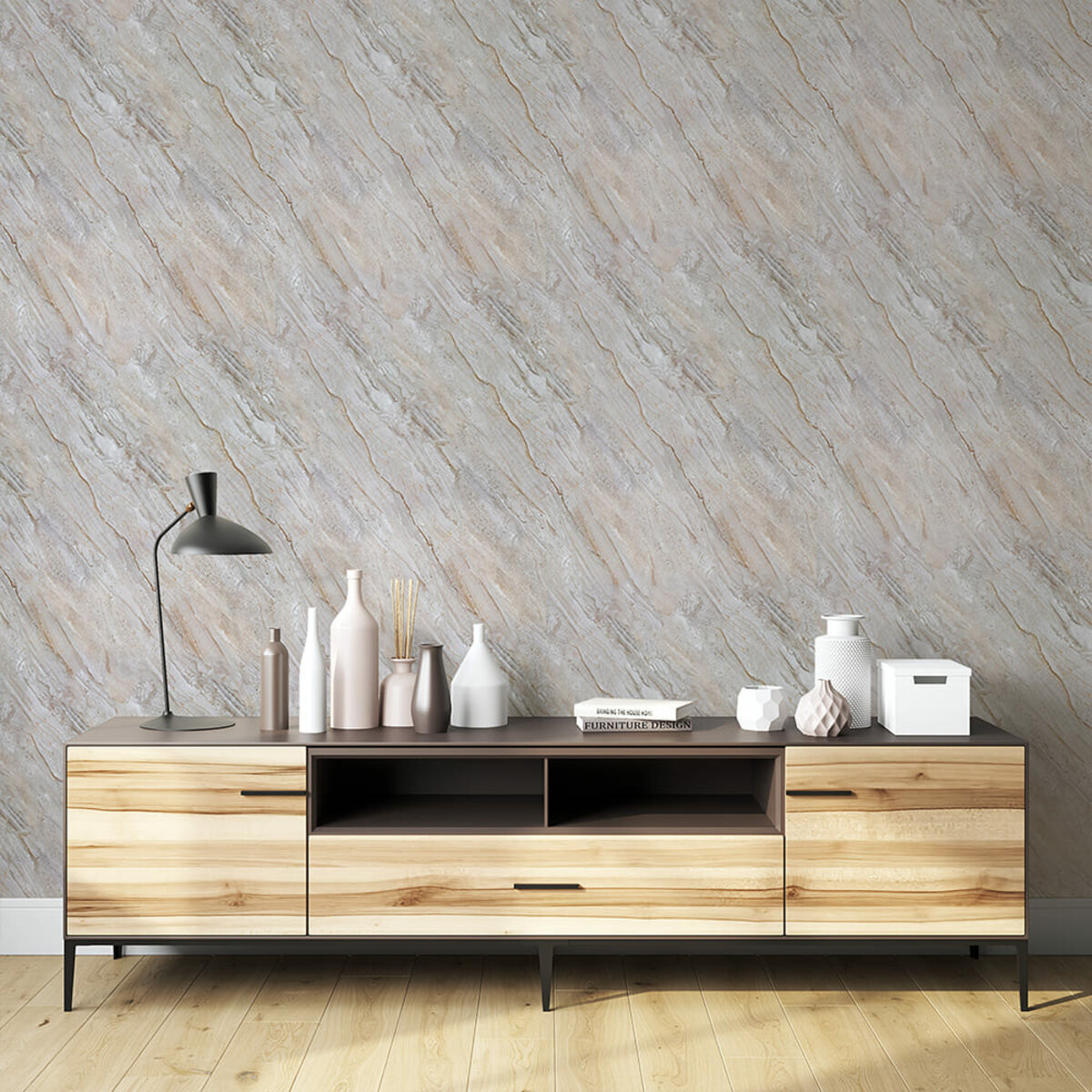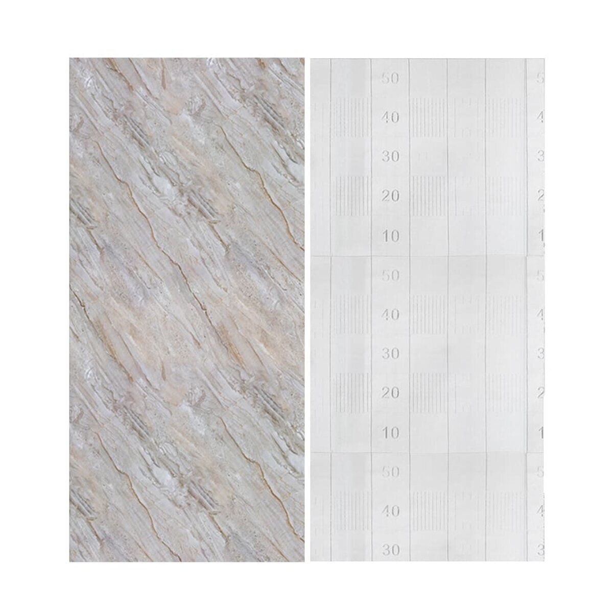 Ламінований шар - верхній шар, який захищає плівку від подряпин, плям та впливу вологи. Ламінований шар додає глянцевий вигляд, а також забезпечує легке очищення від забруднень. Ламінований шар нанесений методом низькотемпературної ламінації, при якому використовують плівку з клейовою основою, що активується при помірній температурі (зазвичай 30-50°C). Плівка проходить через спеціальні вали, які нагрівають її до рівня, достатнього для надійного зчеплення з основним матеріалом, але без ризику деформації. Такий метод ідеально підходить для тонких і температурно чутливих матеріалів, таких як плівка товщиною 0,05 мм, забезпечуючи рівномірний захист і довговічність покриття.Декоративний шар. Під ламінацією знаходиться шар з декоративним друком, на якому зображено малюнок або текстура, що імітують дерево, мармур, плитку чи інші матеріали. Цей шар надає плівці візуальну привабливість, що підходить для різноманітних інтер’єрних рішень.Фольгований шар забезпечує плівці підвищену міцність, роблячи її більш стійкою до розривів, вологи та температурних перепадів. Крім того, фольга додає світловідбивний ефект, що надає поверхні яскравості та стильного вигляду.Клейовий шар нетоксична основа з високим рівнем адгезії, яка забезпечує надійне зчеплення. Захисний силіконізований папір – покриває клейовий шар до монтажу. Вона запобігає випадковому прилипанню плівки, захищає клейовий шар від пересихання та забруднення, легко знімається при монтажі. Маркування на задній поверхні захисного паперу спростить різання матеріалу. Застосування: плівка ідеально підходить для внутрішніх оздоблювальних робіт, таких як декорування та облицювання поверхонь у житлових приміщеннях (кухня, вітальня, дитяча кімната, спальня, передпокій) та комерційних просторах (офіси, зони рецепцій, магазини, салони краси, фітнес-центри), для оновлення меблів, дверей та техніки.