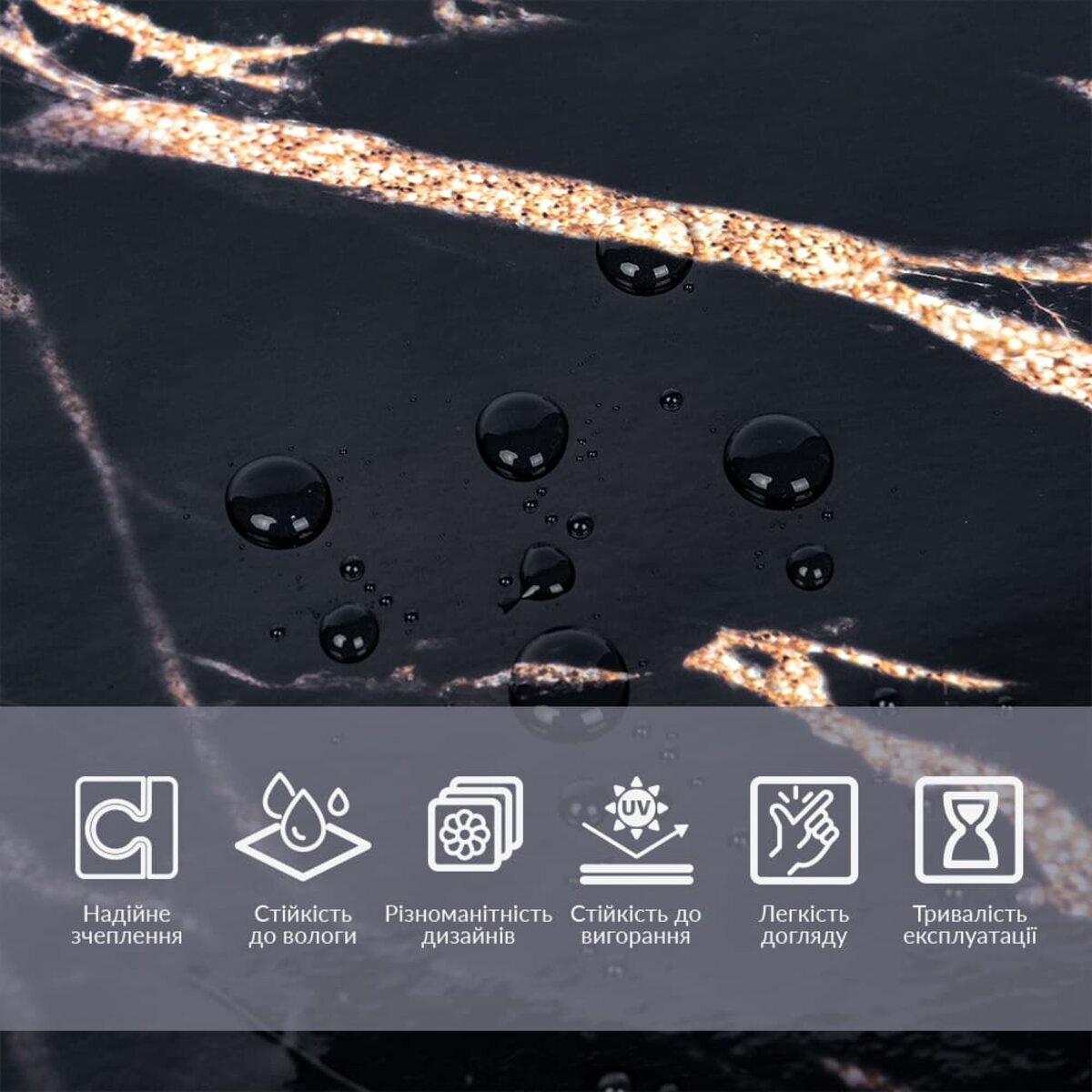 Підвищена міцність: завдяки фольгованій основі, плівка має високу стійкість до розривів — її практично неможливо розірвати без попереднього надрізу. Це забезпечує довговічність та полегшує монтаж.Зносостійкість: Ламінований шар забезпечує ефективний захист поверхні від подряпин, плям, пилу та забруднень, що допомагає зберегти її первісний вигляд. Завдяки цьому шарові плівка залишається гладкою та привабливою навіть при інтенсивному використанні, а також легко очищується від забруднень, що продовжує термін її служби.Вологостійкість: завдяки ламінації, плівка має підвищену стійкість до вологи, що робить її ідеальною для використання у приміщеннях з підвищеною вологістю, таких як кухня чи ванна кімната.Висока адгезія: клейовий шар забезпечує надійне зчеплення з різними поверхнями, такими як метал, скло, пластик і ламіноване дерево, що робить плівку універсальним рішенням для декору, захисту та відновлення.Стійкість до зовнішніх умов: Плівка витримує вплив ультрафіолету, що захищає її від вигорання і дозволяє довго зберігати насиченість кольору, навіть в умовах інтенсивної експлуатації.Тонкість і гнучкість: Завдяки невеликій товщині плівка легко формується та підходить для нанесення на складні або вигнуті поверхні, забезпечуючи точне прилягання.Широкий вибір дизайнів: Великий асортимент текстур, кольорів та дизайнів дає можливість підібрати оптимальне рішення для будь-якого інтер’єру або стилю.Вимоги до поверхонь