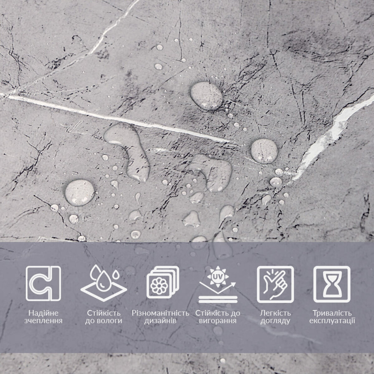 Підвищена міцність: завдяки фольгованій основі, плівка має високу стійкість до розривів — її практично неможливо розірвати без попереднього надрізу. Це забезпечує довговічність та полегшує монтаж.Зносостійкість: Ламінований шар забезпечує ефективний захист поверхні від подряпин, плям, пилу та забруднень, що допомагає зберегти її первісний вигляд. Завдяки цьому шарові плівка залишається гладкою та привабливою навіть при інтенсивному використанні, а також легко очищується від забруднень, що продовжує термін її служби.Вологостійкість: завдяки ламінації, плівка має підвищену стійкість до вологи, що робить її ідеальною для використання у приміщеннях з підвищеною вологістю, таких як кухня чи ванна кімната.Висока адгезія: клейовий шар забезпечує надійне зчеплення з різними поверхнями, такими як метал, скло, пластик і ламіноване дерево, що робить плівку універсальним рішенням для декору, захисту та відновлення.Стійкість до зовнішніх умов: Плівка витримує вплив ультрафіолету, що захищає її від вигорання і дозволяє довго зберігати насиченість кольору, навіть в умовах інтенсивної експлуатації.Тонкість і гнучкість: Завдяки невеликій товщині плівка легко формується та підходить для нанесення на складні або вигнуті поверхні, забезпечуючи точне прилягання.Широкий вибір дизайнів: Великий асортимент текстур, кольорів та дизайнів дає можливість підібрати оптимальне рішення для будь-якого інтер’єру або стилю.Вимоги до поверхонь