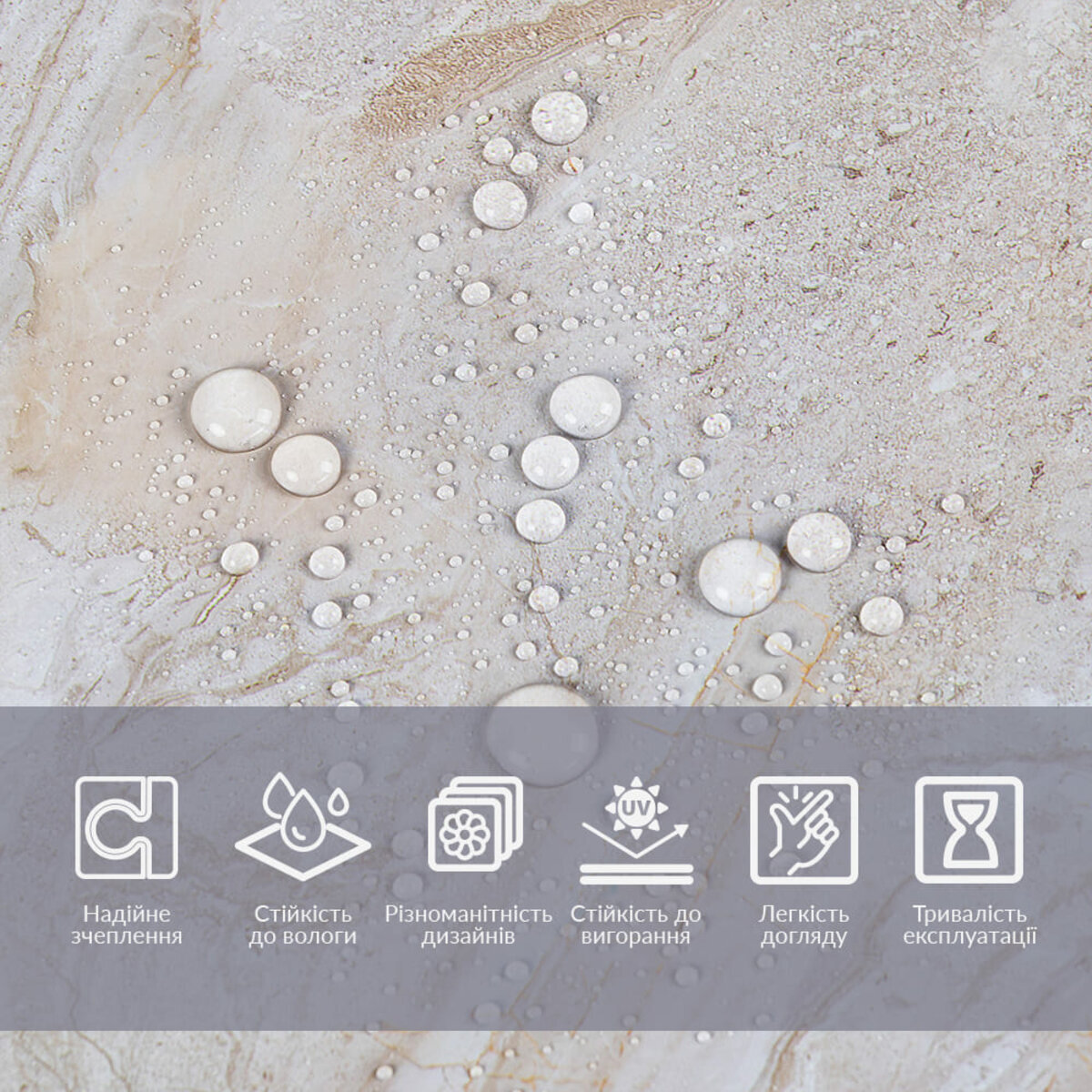 Підвищена міцність: завдяки фольгованій основі, плівка має високу стійкість до розривів — її практично неможливо розірвати без попереднього надрізу. Це забезпечує довговічність та полегшує монтаж.Зносостійкість: Ламінований шар забезпечує ефективний захист поверхні від подряпин, плям, пилу та забруднень, що допомагає зберегти її первісний вигляд. Завдяки цьому шарові плівка залишається гладкою та привабливою навіть при інтенсивному використанні, а також легко очищується від забруднень, що продовжує термін її служби.Вологостійкість: завдяки ламінації, плівка має підвищену стійкість до вологи, що робить її ідеальною для використання у приміщеннях з підвищеною вологістю, таких як кухня чи ванна кімната.Висока адгезія: клейовий шар забезпечує надійне зчеплення з різними поверхнями, такими як метал, скло, пластик і ламіноване дерево, що робить плівку універсальним рішенням для декору, захисту та відновлення.Стійкість до зовнішніх умов: Плівка витримує вплив ультрафіолету, що захищає її від вигорання і дозволяє довго зберігати насиченість кольору, навіть в умовах інтенсивної експлуатації.Тонкість і гнучкість: Завдяки невеликій товщині плівка легко формується та підходить для нанесення на складні або вигнуті поверхні, забезпечуючи точне прилягання.Широкий вибір дизайнів: Великий асортимент текстур, кольорів та дизайнів дає можливість підібрати оптимальне рішення для будь-якого інтер’єру або стилю.Вимоги до поверхонь