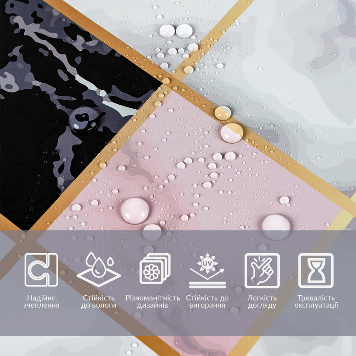 Підвищена міцність: завдяки фольгованій основі, плівка має високу стійкість до розривів — її практично неможливо розірвати без попереднього надрізу. Це забезпечує довговічність та полегшує монтаж.Зносостійкість: Ламінований шар забезпечує ефективний захист поверхні від подряпин, плям, пилу та забруднень, що допомагає зберегти її первісний вигляд. Завдяки цьому шарові плівка залишається гладкою та привабливою навіть при інтенсивному використанні, а також легко очищується від забруднень, що продовжує термін її служби.Вологостійкість: завдяки ламінації, плівка має підвищену стійкість до вологи, що робить її ідеальною для використання у приміщеннях з підвищеною вологістю, таких як кухня чи ванна кімната.Висока адгезія: клейовий шар забезпечує надійне зчеплення з різними поверхнями, такими як метал, скло, пластик і ламіноване дерево, що робить плівку універсальним рішенням для декору, захисту та відновлення.Стійкість до зовнішніх умов: Плівка витримує вплив ультрафіолету, що захищає її від вигорання і дозволяє довго зберігати насиченість кольору, навіть в умовах інтенсивної експлуатації.Тонкість і гнучкість: Завдяки невеликій товщині плівка легко формується та підходить для нанесення на складні або вигнуті поверхні, забезпечуючи точне прилягання.Широкий вибір дизайнів: Великий асортимент текстур, кольорів та дизайнів дає можливість підібрати оптимальне рішення для будь-якого інтер’єру або стилю.Вимоги до поверхонь