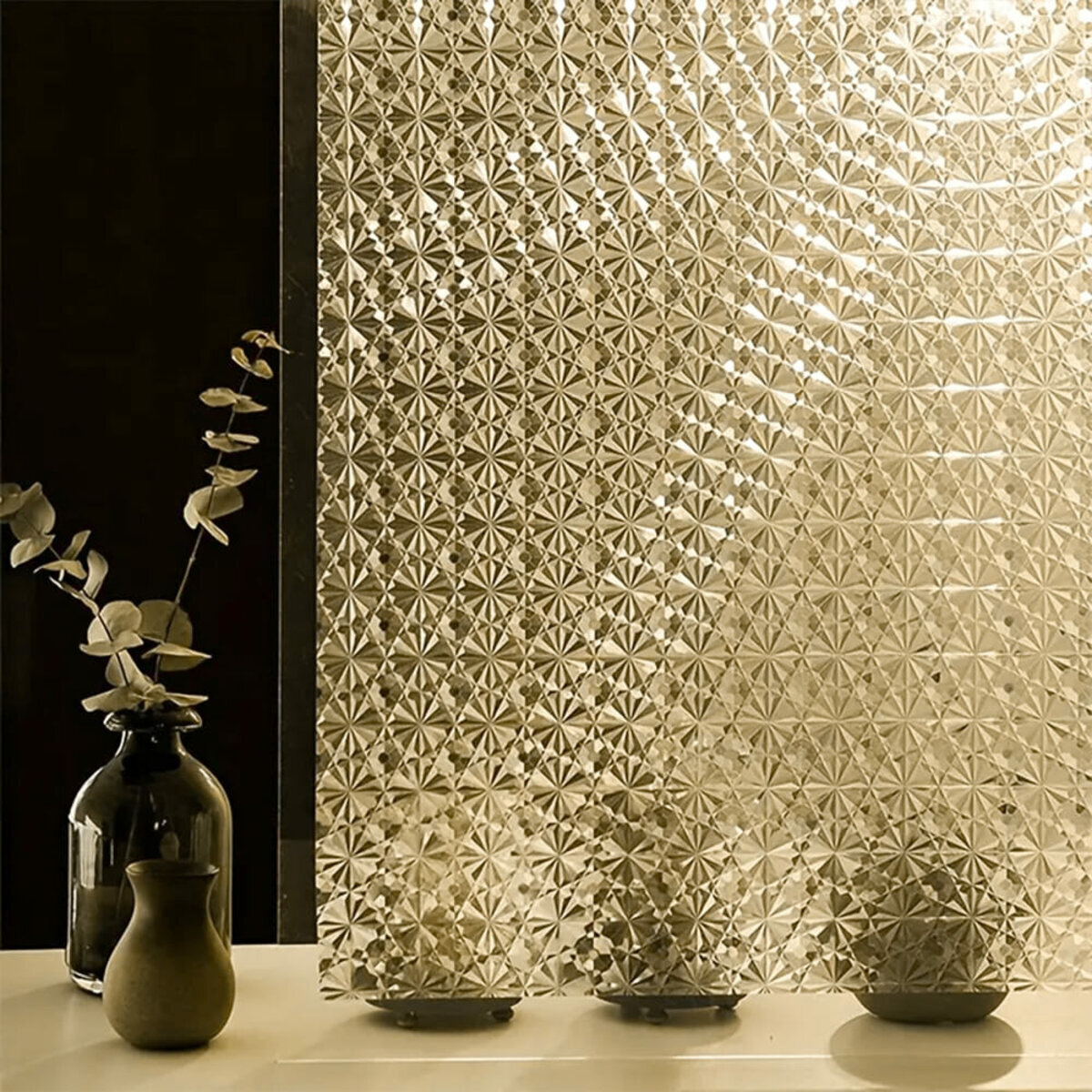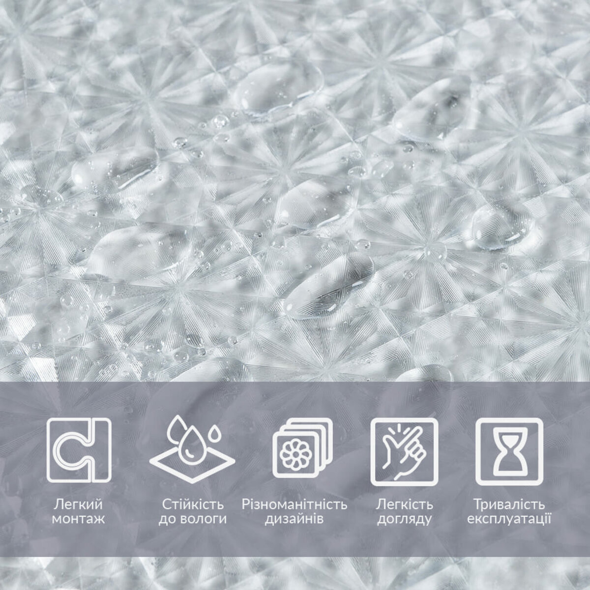 Фактура: призматична (переломлює світло, утворюючи красиві відблиски та візерунки, що нагадують грані призм або скла).