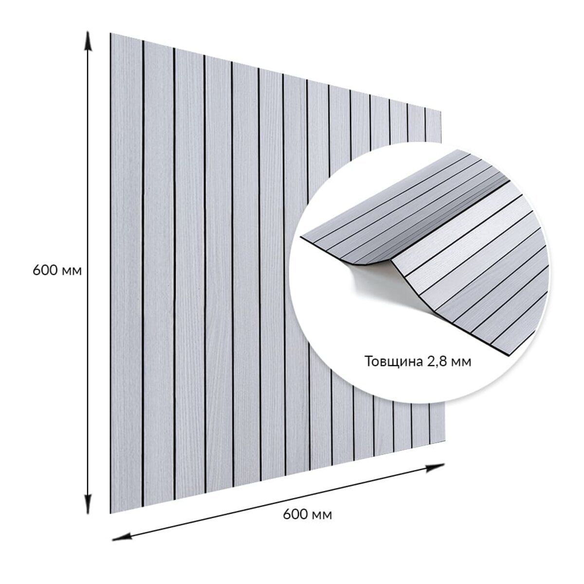 Опис - Покриття вінілове самоклеюче 3D рейки 600х600х2,8мм Білий графіт SW-00002193