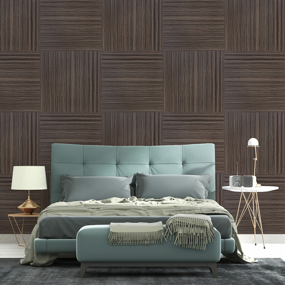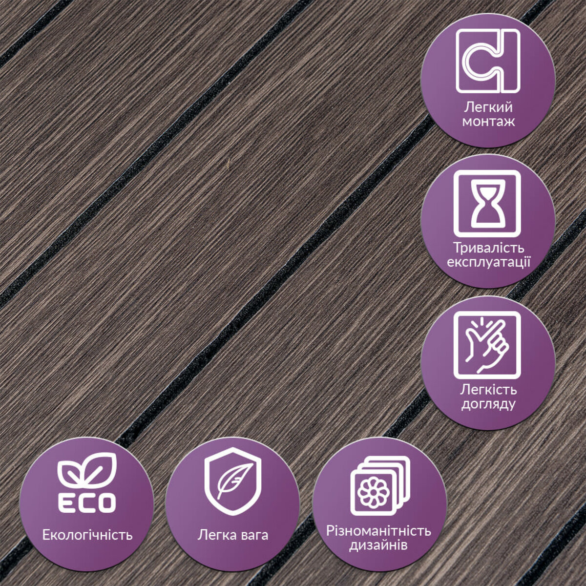 Опис - Покриття вінілове самоклеюче 3D рейки 600х600х2,8мм Димчастий каштан SW-00002195