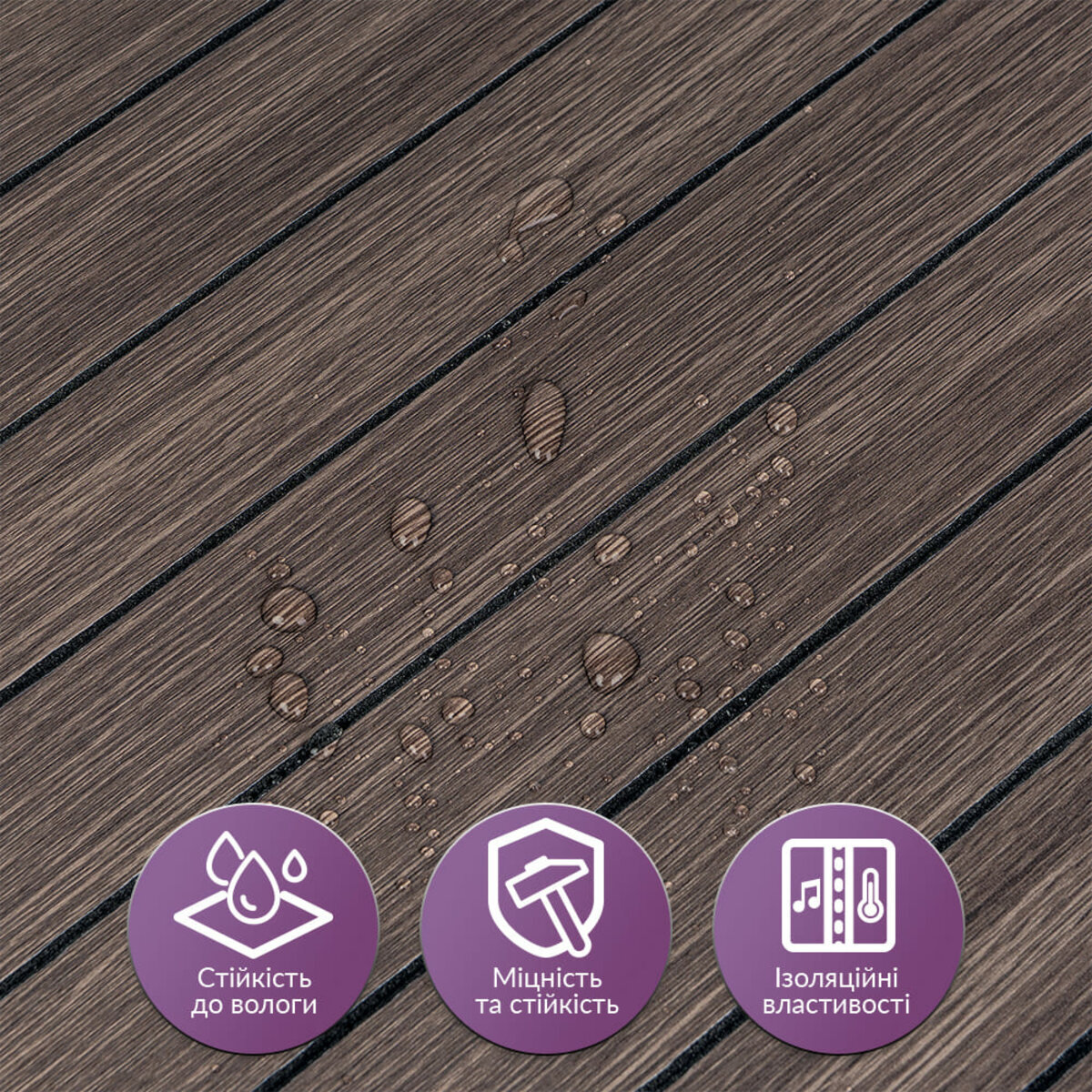 Фактура: рельєфна, імітація дерев'яної рейки. Поверхня матова.