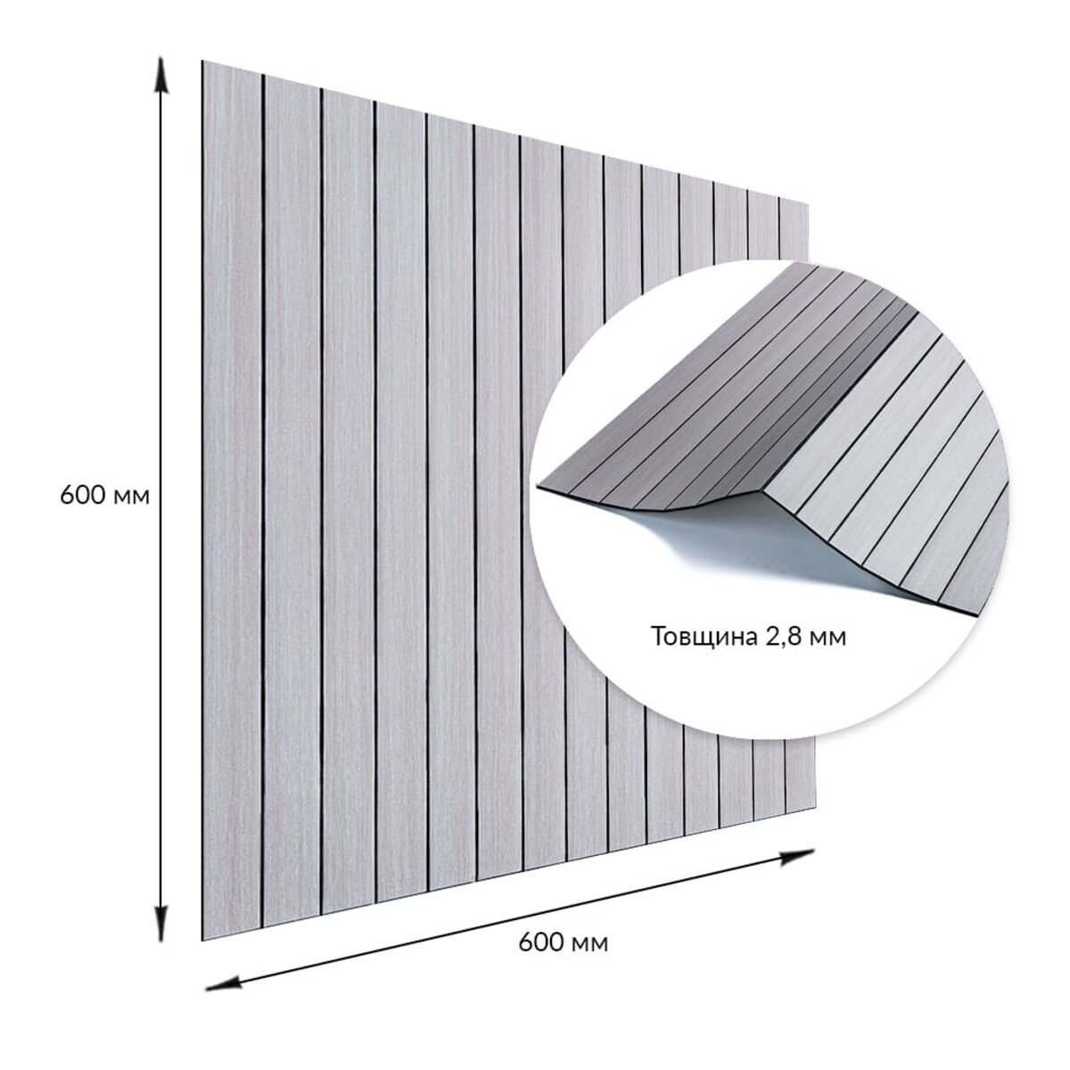 Опис - Покриття вінілове самоклеюче 3D рейки 600х600х2,8мм Кедр срібний SW-00002198