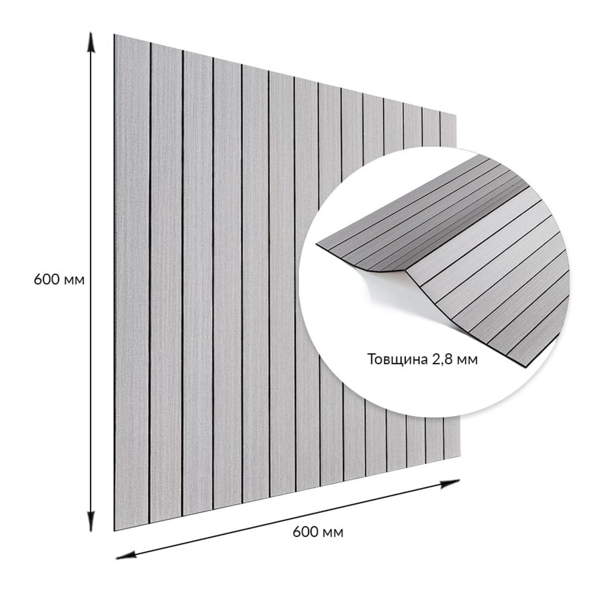 Площа покриття: 600х600 – 0,36 м², 600х3000 мм – 1,8 м²