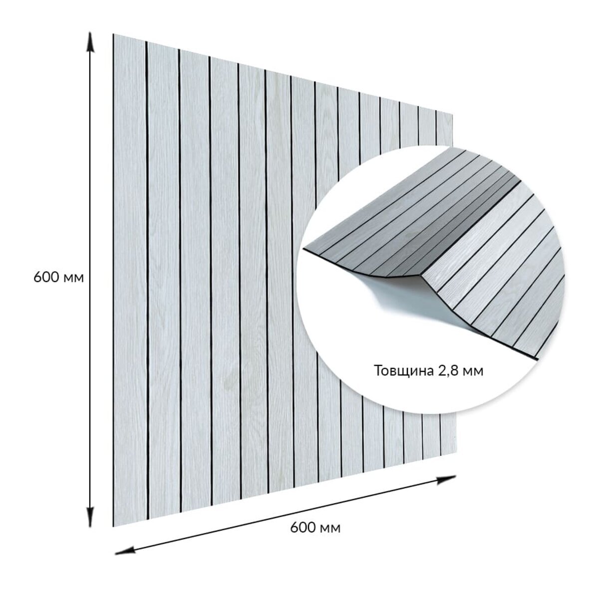 Опис - Покриття вінілове самоклеюче 3D рейки 600х600х2,8мм Скандинавський дуб SW-00002194