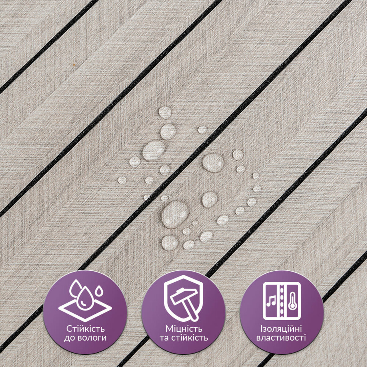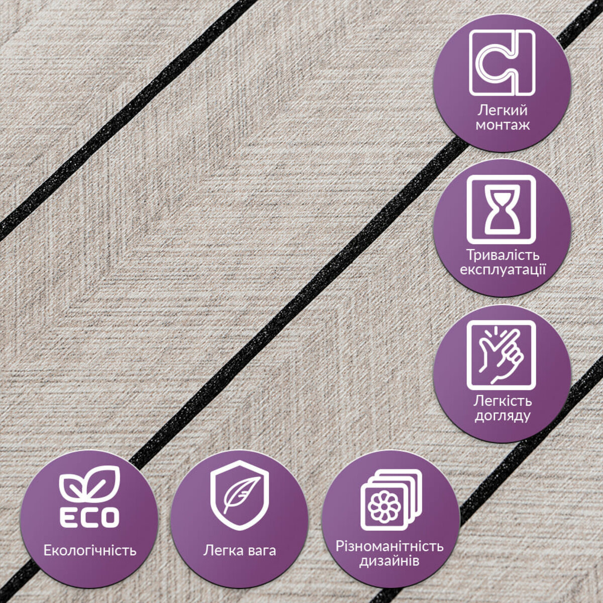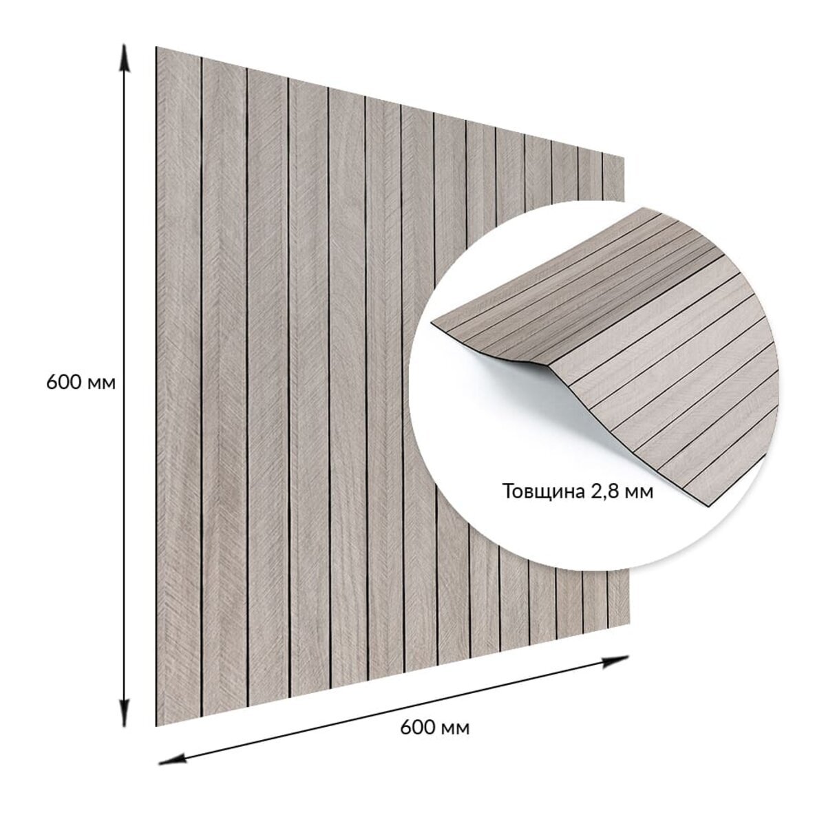 Опис - Покриття вінілове самоклеюче 3D рейки 600х600х2,8мм SW-00003244