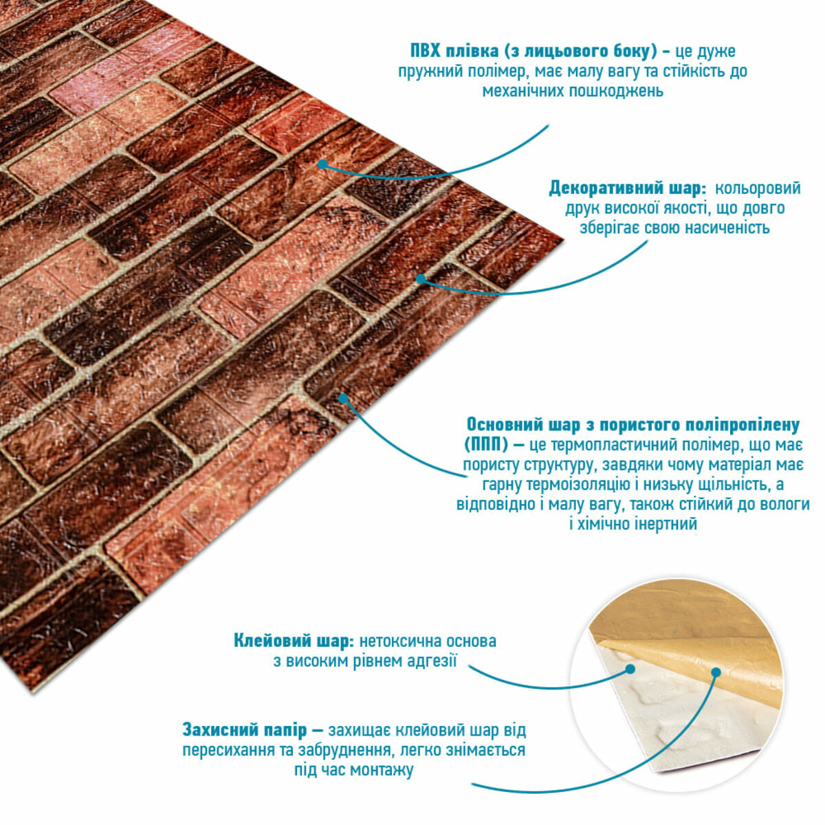 Характеристики - R179-2-3 Панель стінова у рулоні 3D 700мм*3,08м*2мм BROWN (цегла) (D) SW-00002537