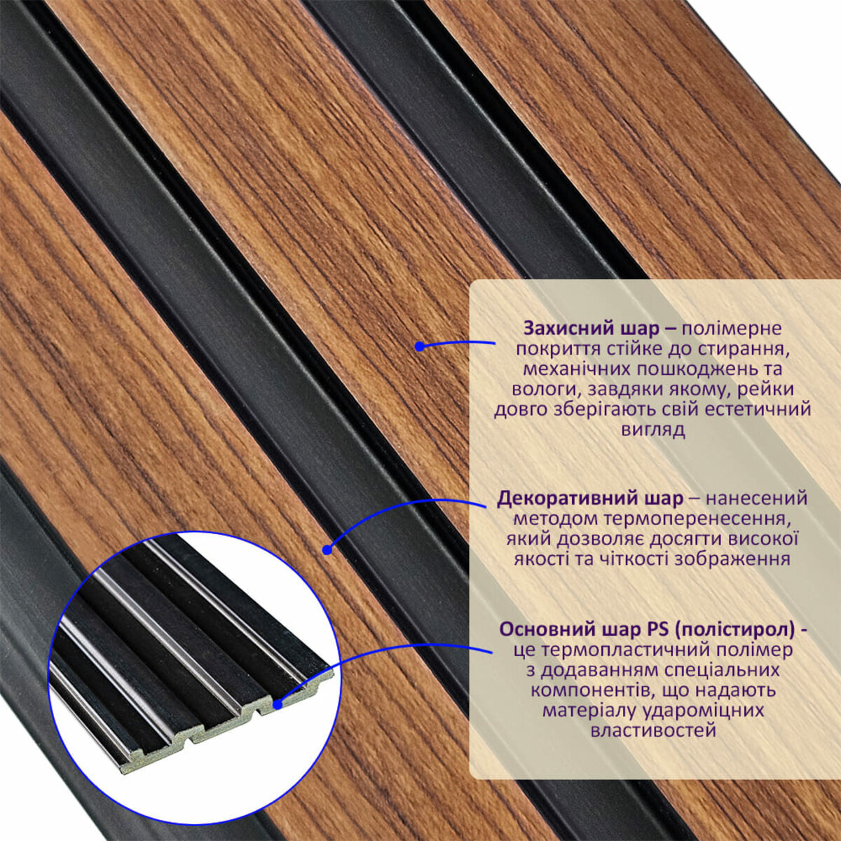 Опис - Рейка декоративна PS 2900х115х12мм Каштановий SW-00001743
