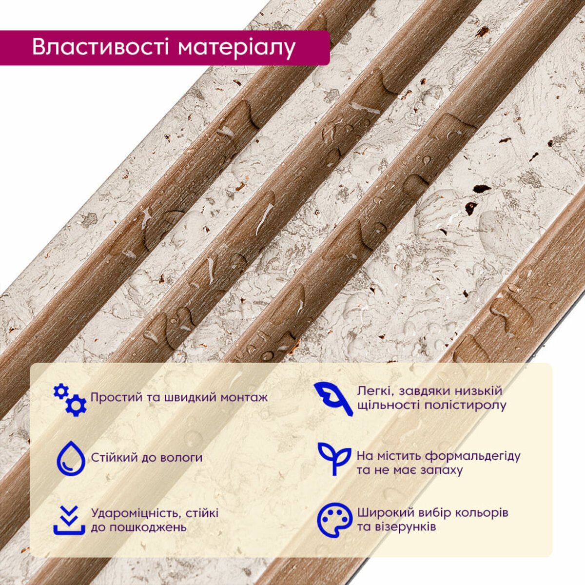 Стінова рейка є елементом для обробки внутрішніх стін в інтер'єрі, має зовнішній вигляд, що імітує текстуру дерева.