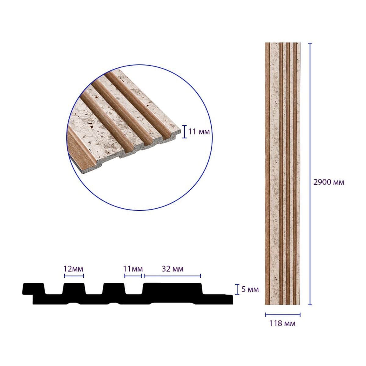 - Площа покриття: 118х2900х11 мм – 0,34 м², кількість на 1 м² – 3 одиниці.