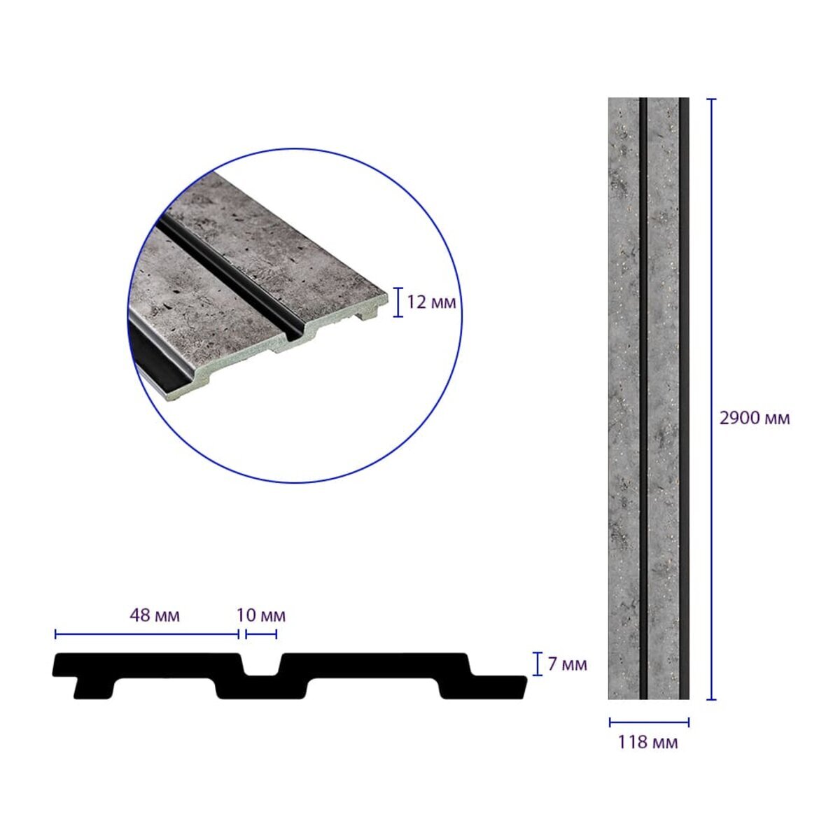 - Розміри: 118х2900х12 мм