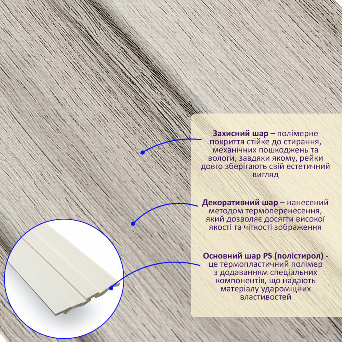 Опис - Рейка декоративна PS 2900х119х12мм Сріблястий дуб SW-00002143-