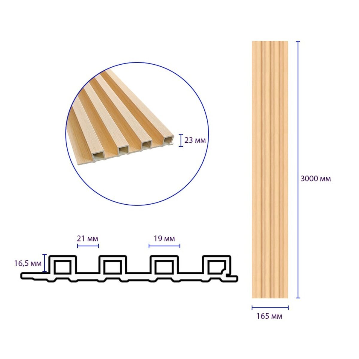 Опис - Рейка декоративна WPC для стін 3000х165х23мм Світле дерево SW-00002572-