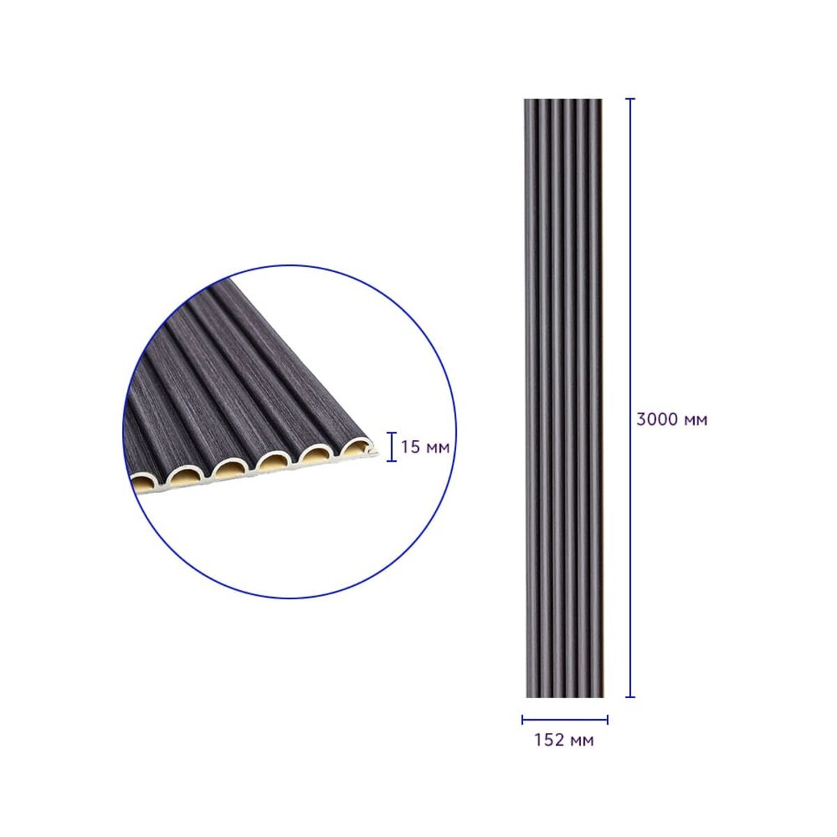 Опис - Рейка декоративна WPC кругла стінова 3000х152х15мм Графіт SW-00001873