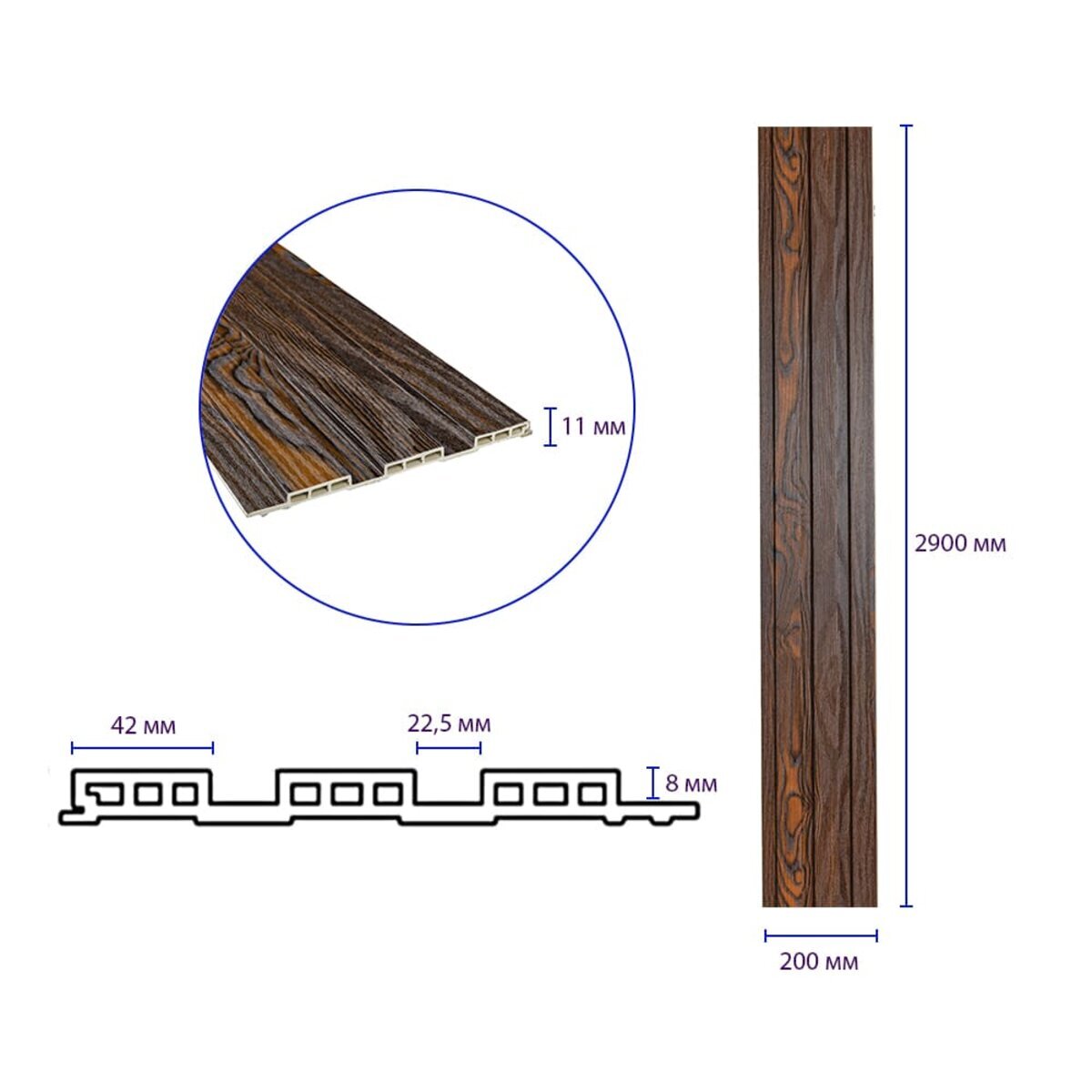 Опис - Рейка декоративна WPC стінова 200х11х2900мм SW-00003008