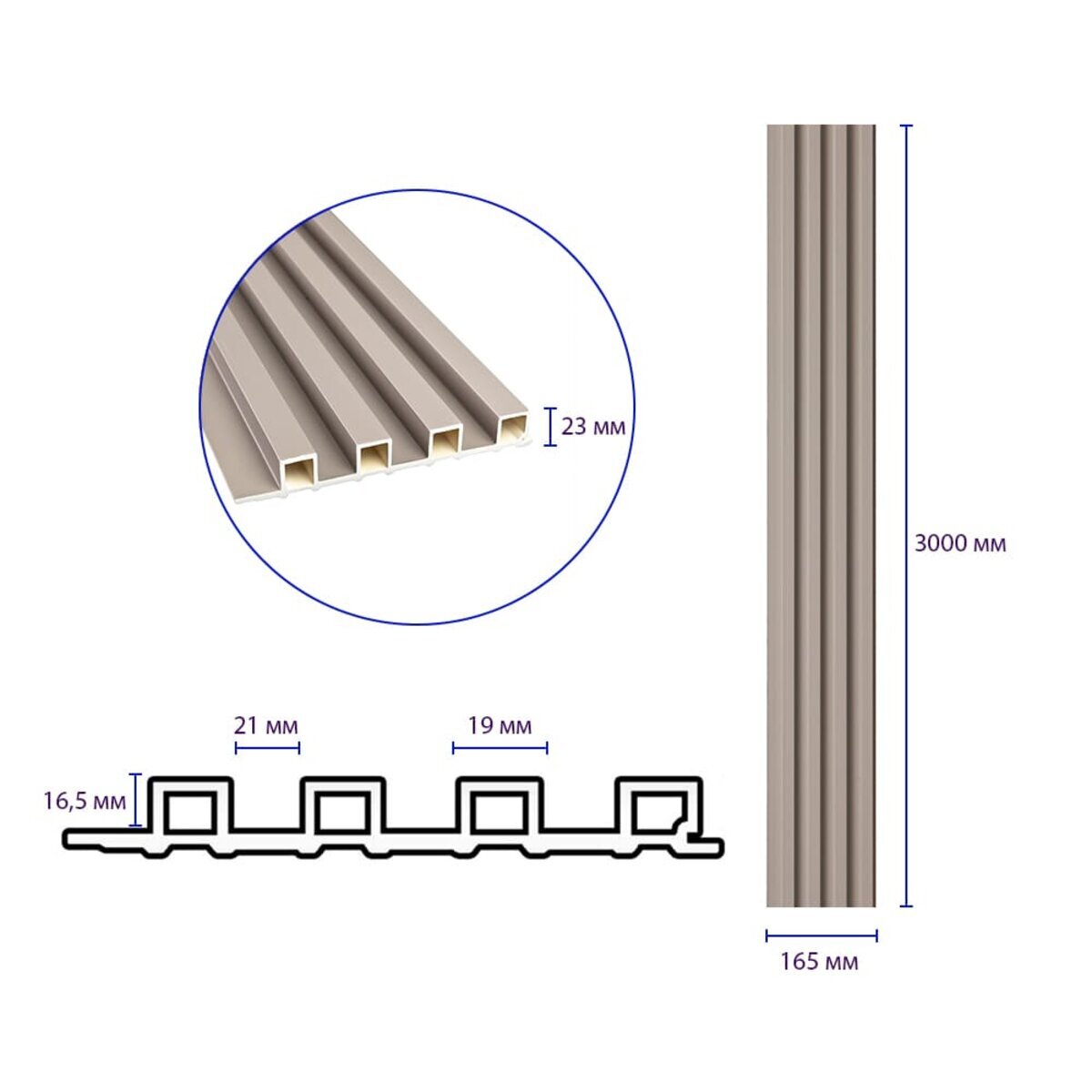 Опис - Рейка декоративна WPC стінова 3000х165х23мм Мокко SW-00001859