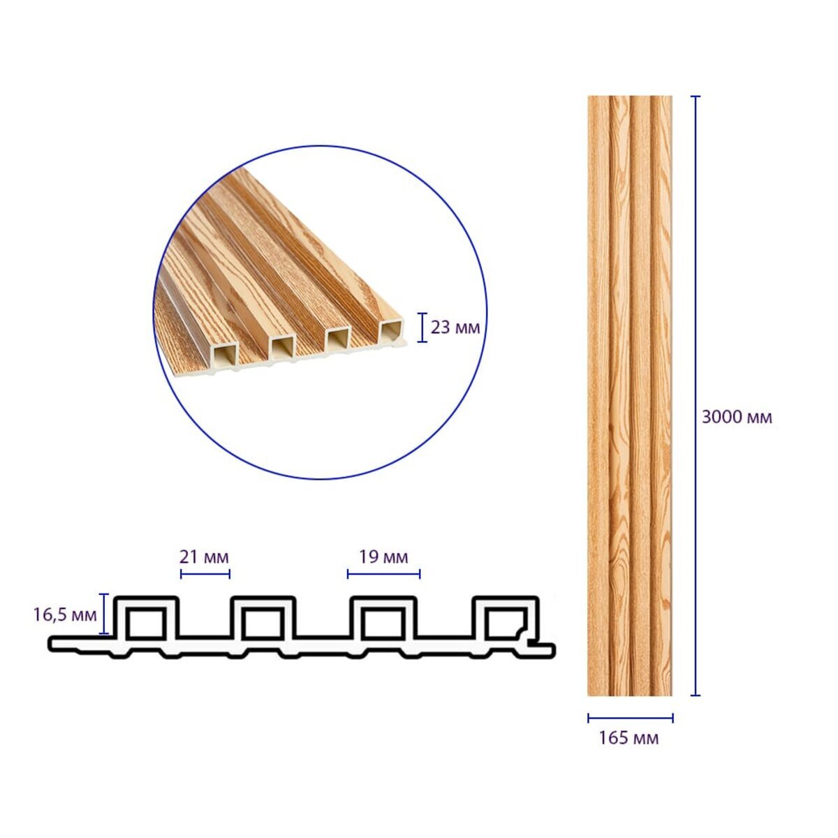 Опис - Рейка декоративна WPC стінова 3000х165х23мм Сосна SW-00001526