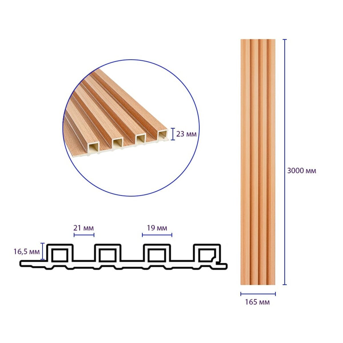 Опис - Рейка декоративна WPC стінова 3000х165х23мм Вільха SW-00001539